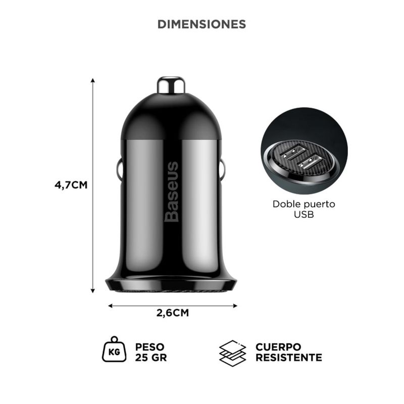 - Modelo: Baseus Grain Pro Car Charger