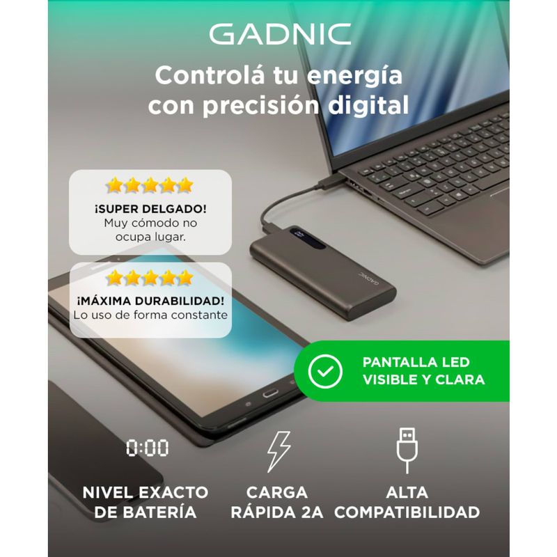 El BC-19 deja claro lo que es un banco de carga insignia. Con 15.000 mAh, esta bestia ha sido domada con una pantalla digital de alta precisión que le permite conocer con exactitud la energía restante. Viene con un puerto USB, otro MICRO-USB y, por último, un USB Type C (únicamente para carga del PowerBank).Su diseño lo hace práctico y fácil de portar, ya que al ser estrecho no ocupa casi espacio, es ideal para viajes, fin de semana en el campo o exteriores donde no hay conexión eléctrica.