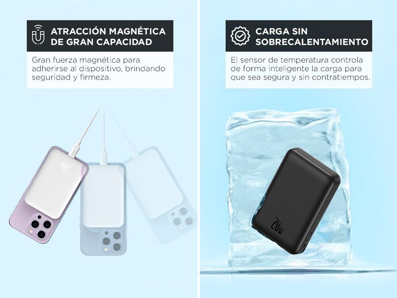 Descubrí el Power Bank Baseus, la solución definitiva para carga rápida y versátil. Con capacidad de 10000mAh, este power bank ofrece carga inalámbrica y por cable 2-en-1, con soporte para carga rápida de 20W. Su innovador diseño de carga magnética te permite conectar y empezar a cargar al instante. Además, el display LED muestra el nivel de batería, asegurando que siempre estés al tanto de su estado. Ideal para quienes buscan eficiencia y rendimiento, el Power Bank Baseus es tu compañero perfecto para mantener tus dispositivos siempre cargados.