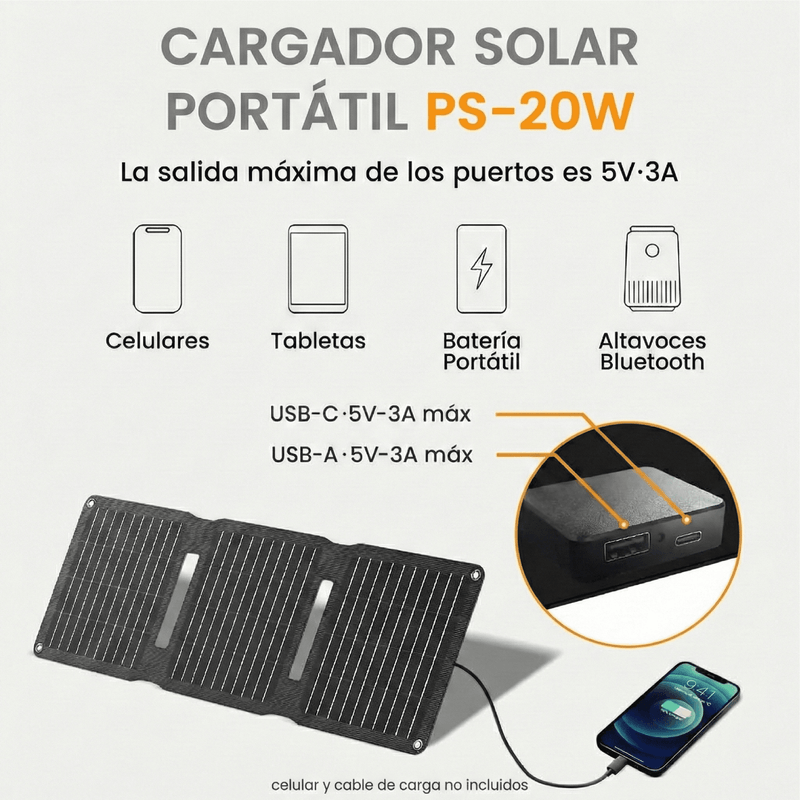 Ya sea que estés haciendo cumbre en una montaña o acampando en la playa, el Cargador Solar Portátil Nexum PS-20W mantiene tus dispositivos vivos. A diferencia de los paneles rígidos antiguos, este modelo utiliza recubrimiento ETFE de última generación, más duradero y eficiente captando luz solar.