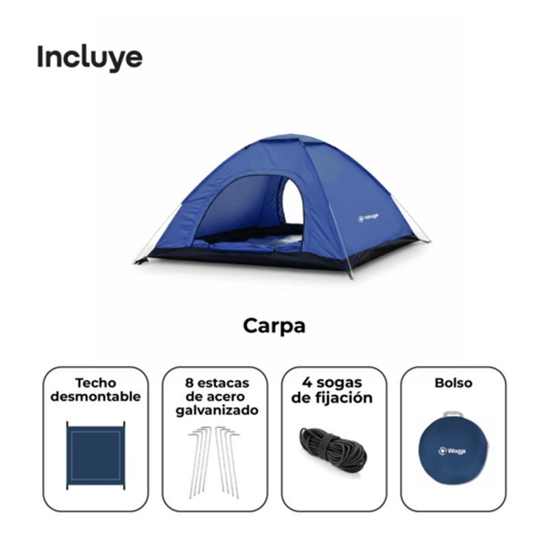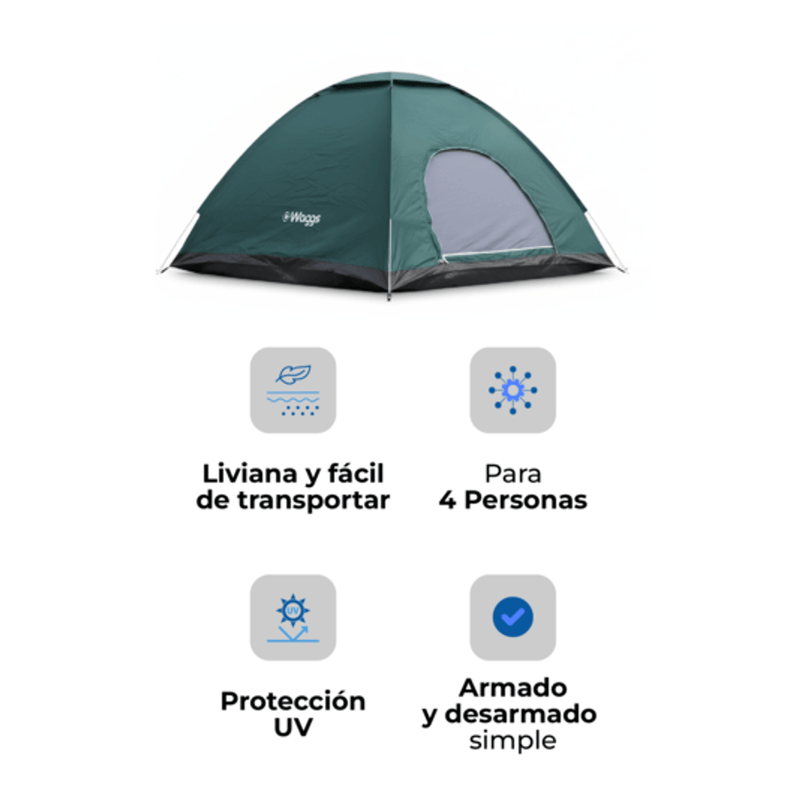 La WAGGS CARP02 es una carpa iglú autoarmable práctica y confiable, ideal para quienes buscan comodidad sin complicaciones en cada salida. Su estructura con varillas flexibles permite un armado rápido y estable, mientras que la tela de poliéster impermeable y el techo desmontable se adaptan fácilmente a distintas condiciones climáticas, ofreciendo ventilación o protección según lo necesites. Con capacidad cómoda para 4 personas, doble puerta con mosquiteros, buena circulación de aire y un interior fresco, es perfecta para camping y escapadas al aire libre. Además, su diseño liviano y compacto facilita el traslado, convirtiéndola en una opción funcional y segura para disfrutar cada aventura con el respaldo de WAGGS.