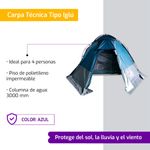 Carpa Técnica Iglú 4 Personas Xtreme Con Alero 210(+60)x220x120cm Azul
