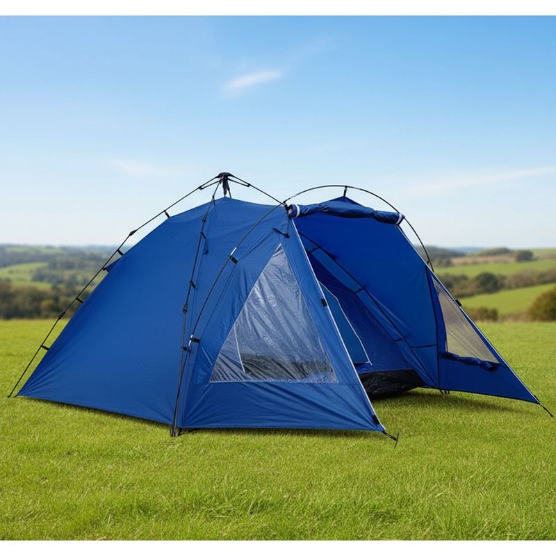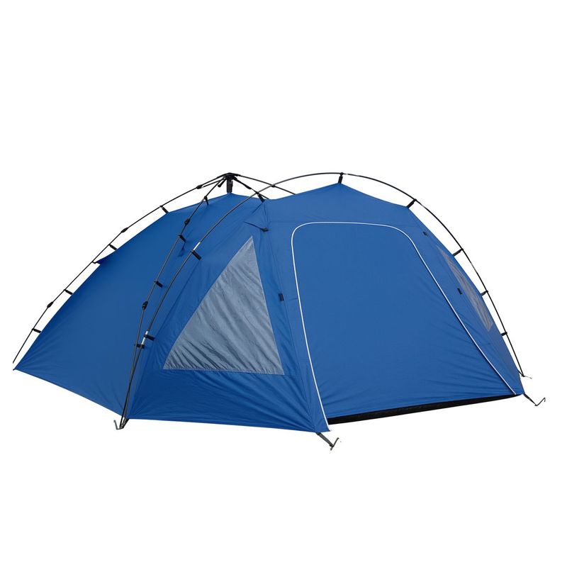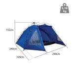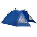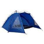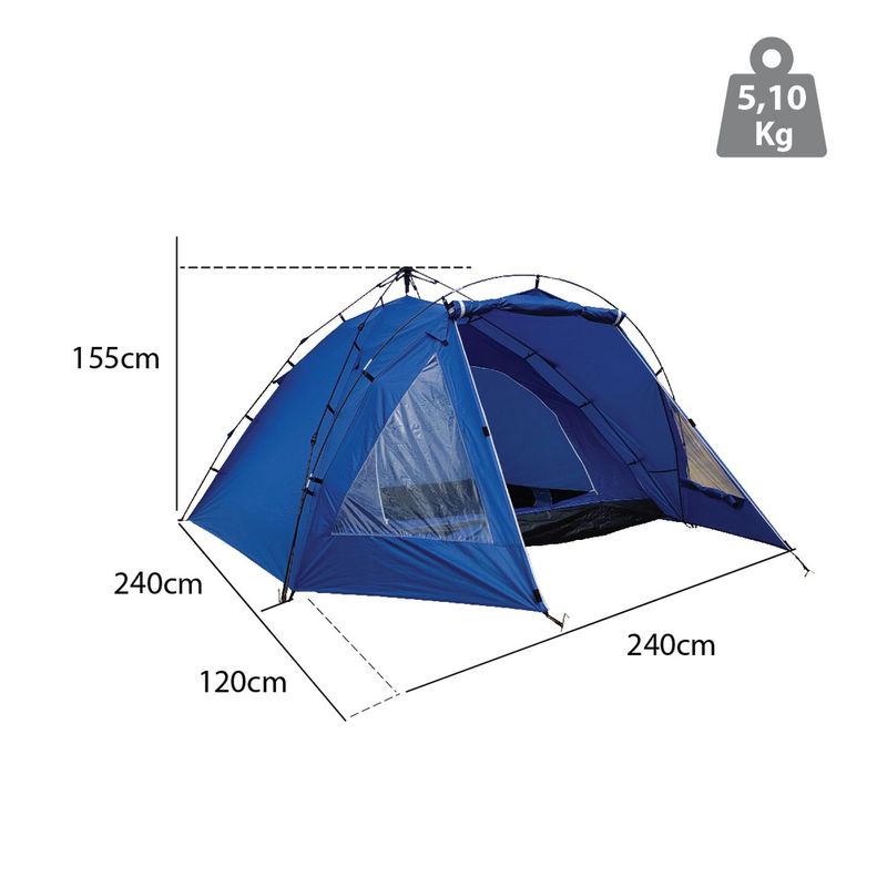 Carpa iglú con avance 240 x (120+240) x 155 cm con tratamiento UV, poliéster 190T/170T, piso PE 120 g/m² y varillas de fibra de vidrio (azul/gris)