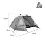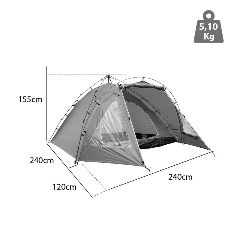 Más espacio y orden en el campamento: el avance frontal de 120 cm te permite guardar equipo seco y a mano, mientras descansás protegido del sol y de la humedad ligera.