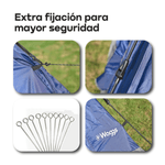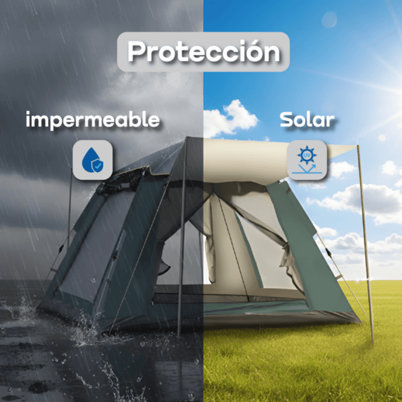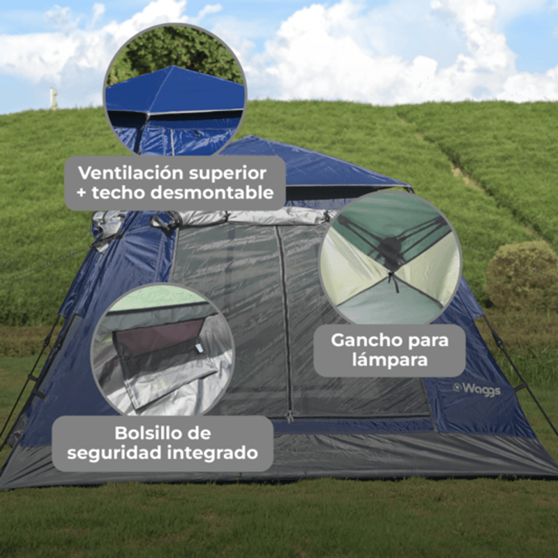 Viví una experiencia de camping práctica y confortable con la Carpa Autoarmable WAGGS CARP08, pensada para quienes buscan armado rápido, buena ventilación y protección real en cada salida. Su estructura autoarmable con varillas de fibra de vidrio permite montarla en minutos, mientras que el techo desmontable de doble capa se adapta al clima brindando mayor ventilación o resguardo total. Los aleros con postes en ambas puertas suman sombra y espacio extra, manteniendo el interior fresco incluso en días calurosos, y las ventanas laterales con Mesh B3 aseguran circulación de aire continua sin ingreso de insectos. Con capacidad para 4 personas, tela Oxford 210 con impermeabilidad PU3000 y costuras reforzadas, la CARP08 combina resistencia, funcionalidad y una estética premium que eleva cualquier experiencia de camping junto a WAGGS.