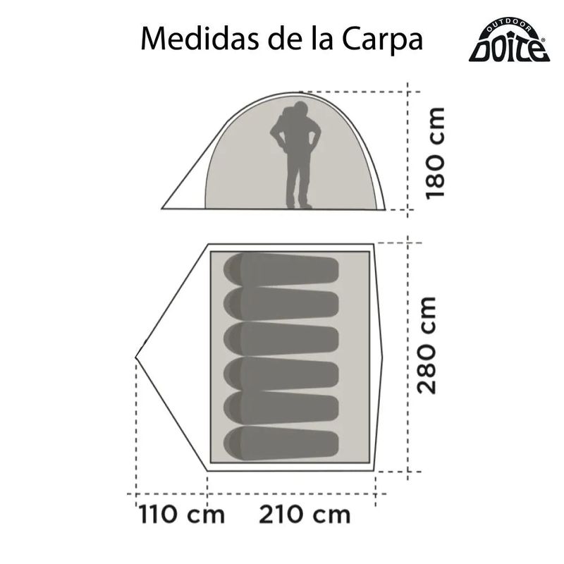 Carpa tipo Iglú de diseño simple, familiar, con extensión frontal, cuenta con piso y faldón delantero.