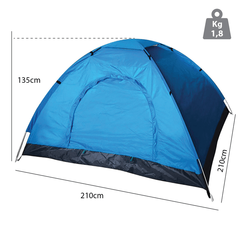 Carpa para 4 personas, práctica y ligera, ideal para camping y actividades al aire libre en climas templados. No recomendable para condiciones climáticas extremas.