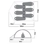 Armazón: Varillas de fibra de vidrio de 9.5 mm huecas ensambladas con cordón elástico.