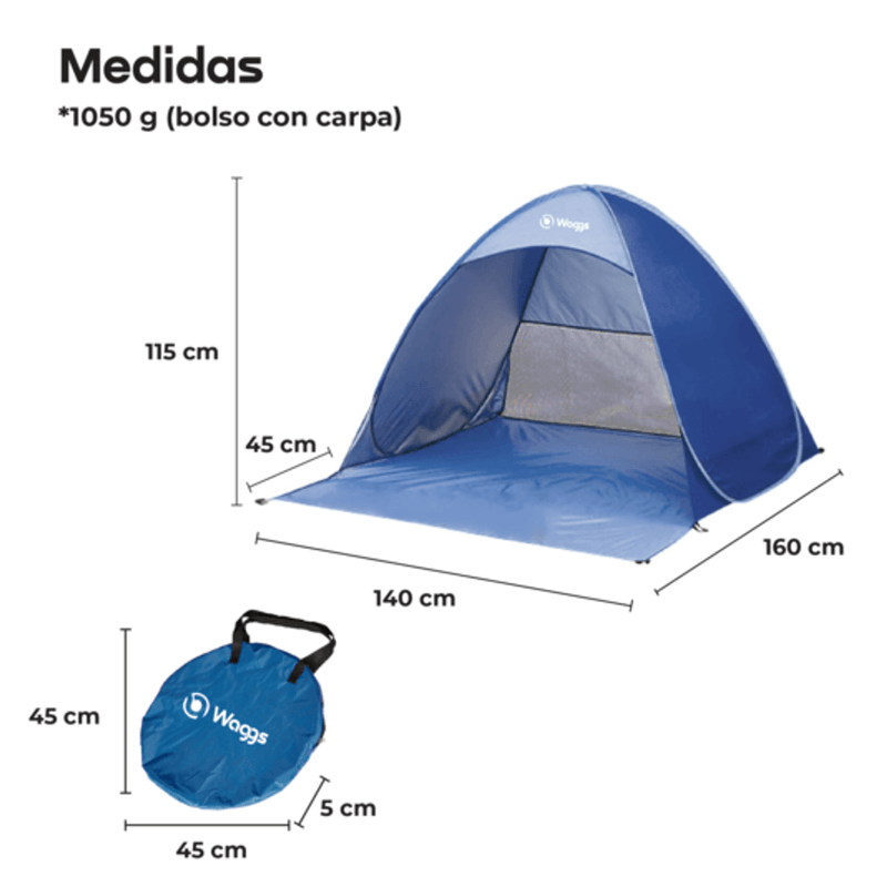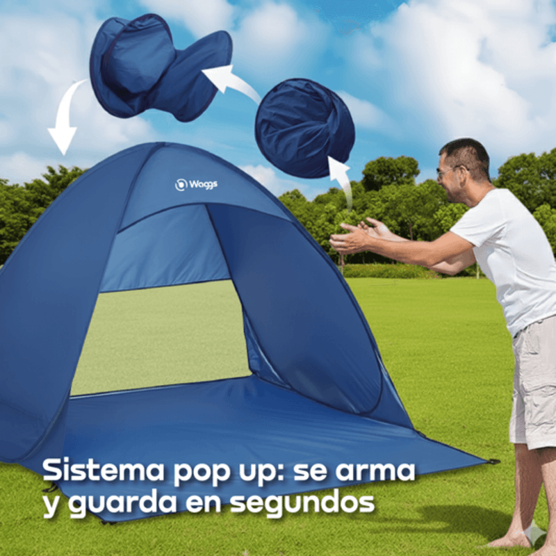 Viví tus escapadas con la Carpa Playera WAGGS CARP01, pensada para quienes buscan practicidad, liviandad y protección en cualquier salida: su sistema pop-up se arma en segundos, es liviana y fácil de transportar, y está fabricada en poliéster 190T con estructura flexible de acero y malla de alta densidad que asegura ventilación constante y protección frente al sol y la brisa. Su base extendida permite usarla como piso tipo lona para sentarse o apoyar objetos, convirtiéndola en una opción simple, resistente y funcional, ideal para playa, camping liviano, parques, lagos o escapadas improvisadas para dos personas, incluyendo bolso de transporte y estacas para mayor estabilidad.