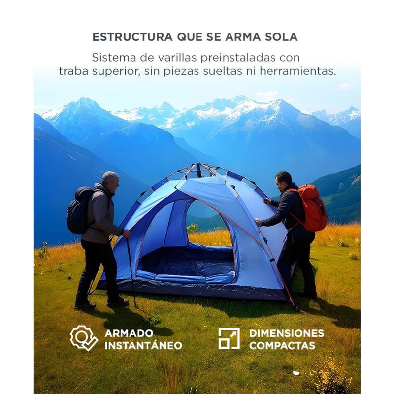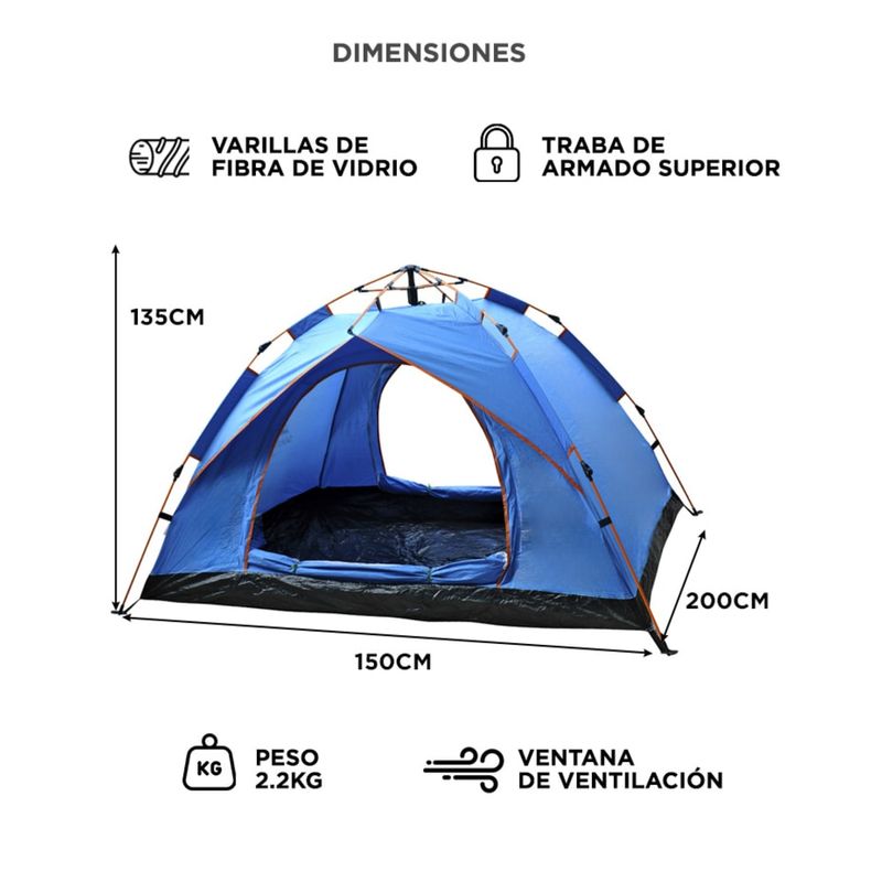Gracias al sistema automático con traba superior, podés montar la carpa en tiempo récord sin herramientas.
