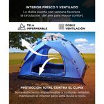 Su interior de 200x150 cm ofrece espacio ideal para dos adultos, con ventilación cruzada y acceso doble.