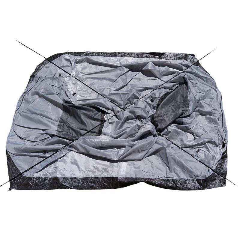 El cubre techo de poliéster 190T con costuras selladas y una columna de agua de 3000 mm asegura impermeabilidad incluso en lluvias intensas. El interior, confeccionado en poliéster respirable con mosquitero No-See-Um, brinda protección contra insectos sin sacrificar la ventilación.