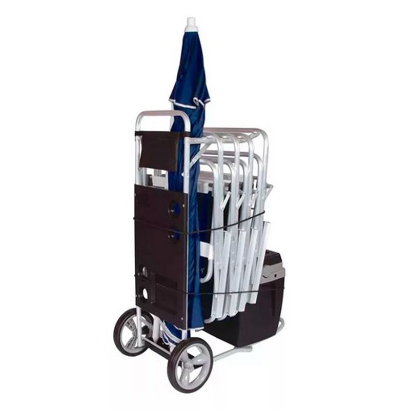 Con un peso máximo soportado de 20 kg, es perfecto para llevar toallas, sombrillas, juguetes y más. Su diseño práctico y funcional lo convierte en un compañero indispensable para tus escapadas a la playa, picnics o excursiones. Disfruta de la comodidad y la versatilidad que ofrece este carrito, diseñado para hacer tu experiencia al aire libre más placentera.