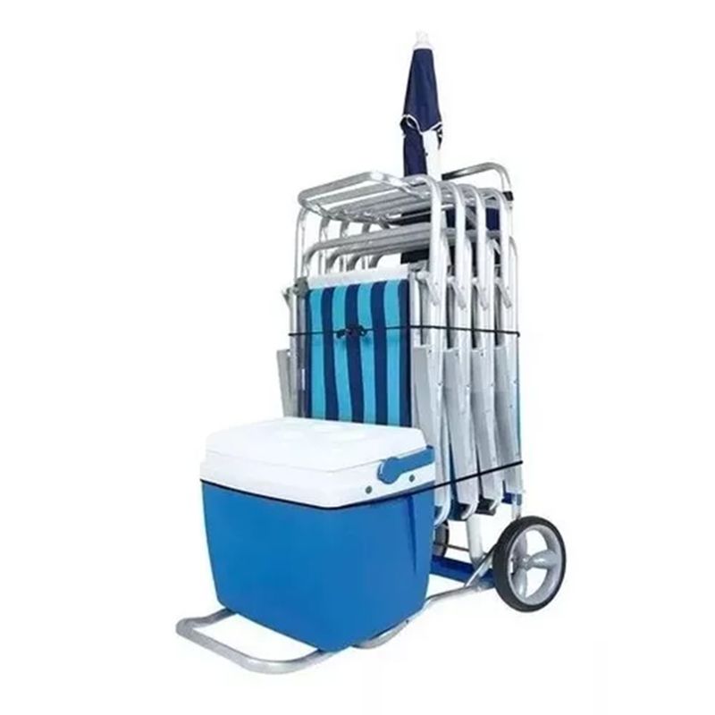 El carrito de playa Mor Extensible hará que tu verano sea aún más agradable con menos esfuerzo! Además de llevar todo lo necesario para disfrutar de un día de playa, tu carrito se convierte en una práctica mesa con cuatro ranuras para vasos o latas que llegarán frías gracias a tu conservadora. Tiene espacio para transportar tu paraguas, sillas, esterilla y también tu conservadora. Mantener los alimentos y las bebidas en buen estado ahora es más fácil. Además, el carrito también viene con una bolsa de almacenamiento de PVC para que guardes tus pertenencias personales, como llaves, vasos, dinero y cualquier otra cosa que necesites. Sus grandes ruedas garantizan un excelente desempeño en la arena y su estructura producida por Mor, en aluminio de excelente calidad y tapa de polipropileno garantizan durabilidad, ya que su carro no se oxida, incluso en las regiones costeras. Para mayor seguridad, viene con una cuerda elástica con gancho para asegurar tus pertenencias durante el transporte. ¡Resistente, soporta hasta 20 kg distribuidos y te acompañará durante muchas vacaciones de verano!