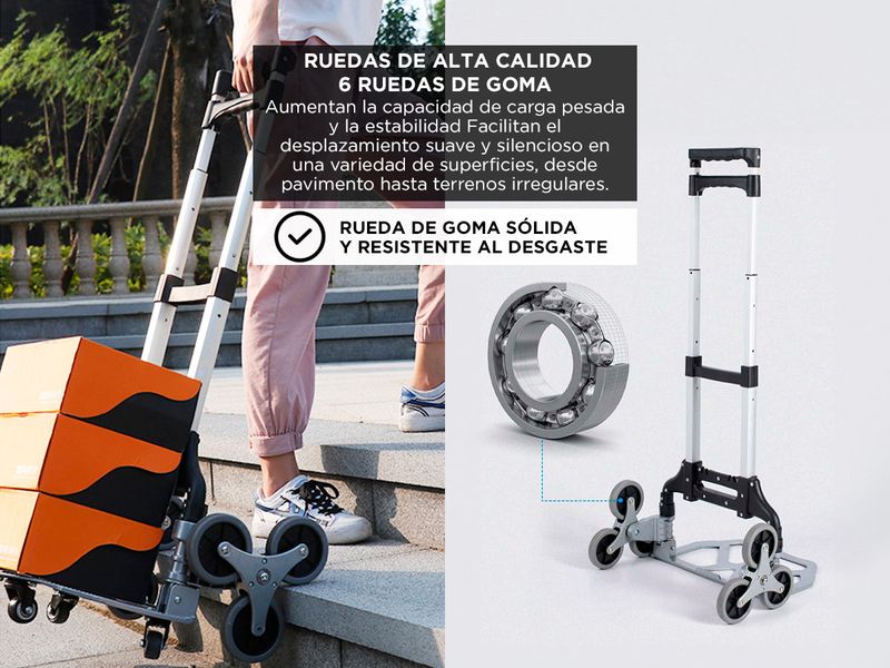 Ruedas de Goma de Alta Calidad: Las ruedas de goma de alta calidad ofrecen una excelente tracción y amortiguación, facilitando el desplazamiento suave y silencioso en una variedad de superficies, desde pavimento hasta terrenos irregulares.