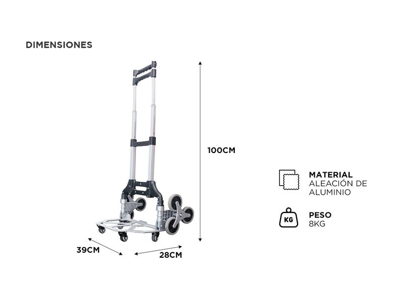 Diseño Plegable y Compacto: El diseño plegable del carro permite un fácil almacenamiento y transporte cuando no está en uso. Apto para guardar en el auto, armario o espacio de almacenamiento pequeño.