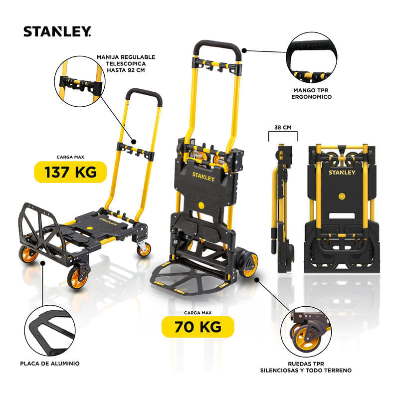 Carro Carretilla Plataforma Stanley 2 En 1 Plegable 137kg Negro/amarillo