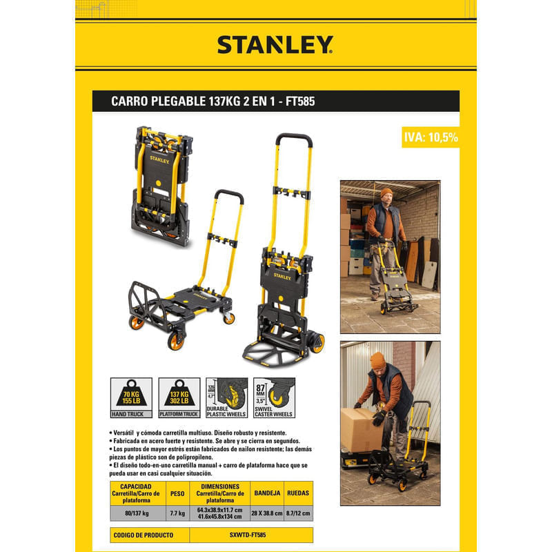 Carro Plataforma 2 En 1 Stanley 137kg Ft585