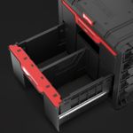 - Acceso Dinámico: El sistema de 2 cajones permite organizar herramientas por tamaño y frecuencia de uso, manteniendo el orden durante toda la jornada laboral.