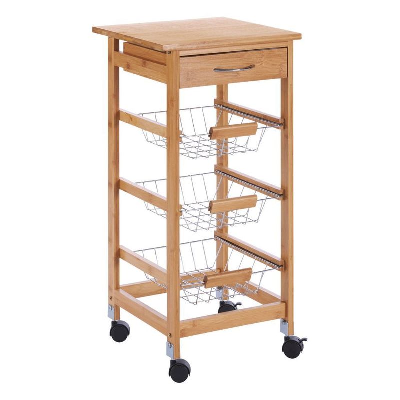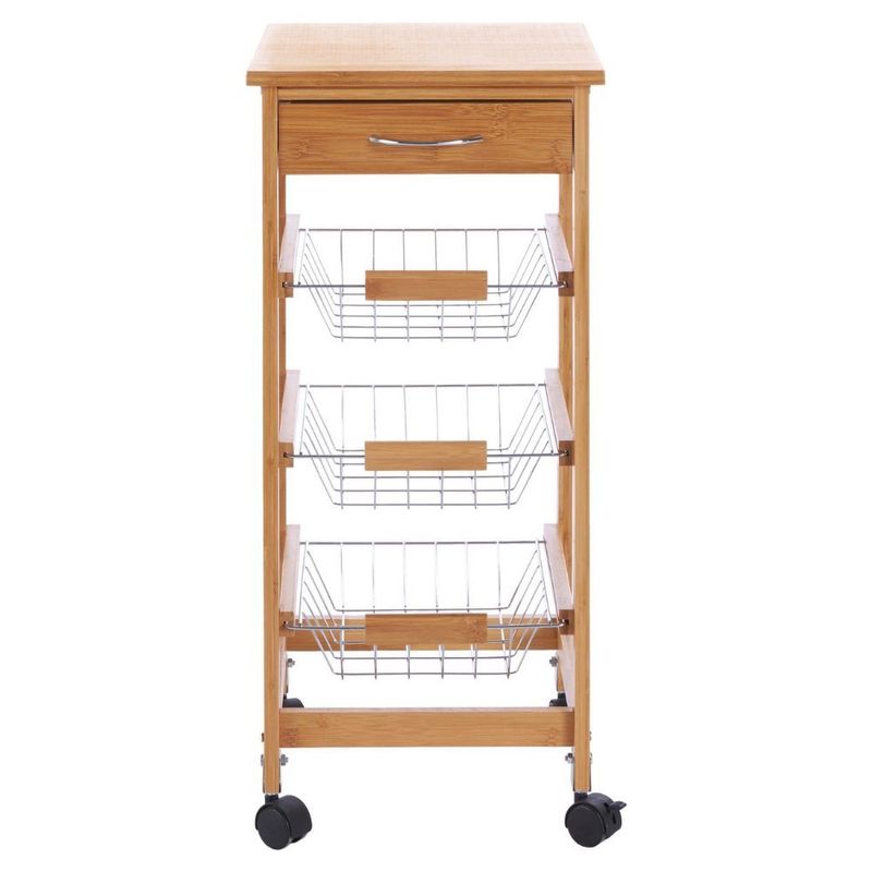 » Características generales: El carro organizador está fabricado con una combinación de bambú y MDF, lo que le otorga una estructura resistente y duradera, además de un toque elegante y natural.