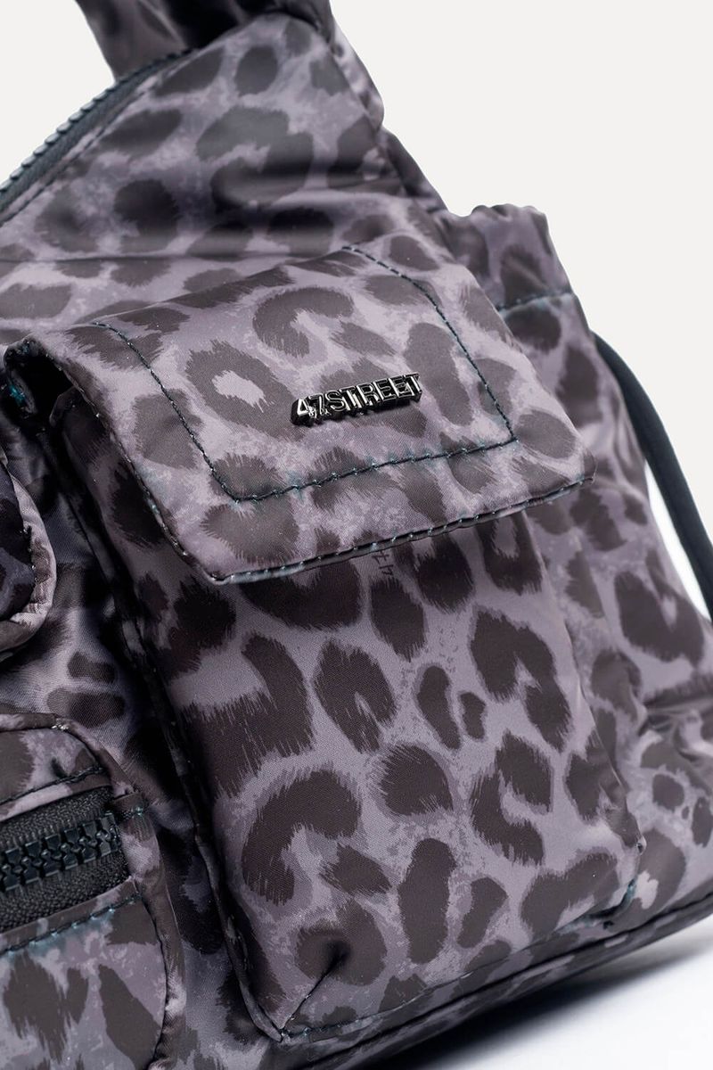 Cartera de nylon estampada con diseño animal print, con tres bolsillos delanteros y dos laterales de fácil acceso. Incluye correa corta acolchada para mayor comodidad. Funcional y con onda, perfecta para acompañar outfits casuales.
