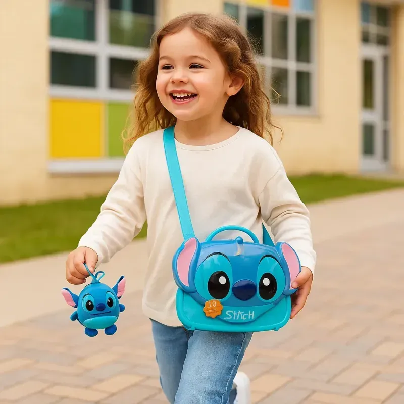 ¡Llevá a Stitch a todos lados con esta adorable cartera y su peluche incluido! Ideal para jugar, guardar secretos o complementar el look de los más chicos.