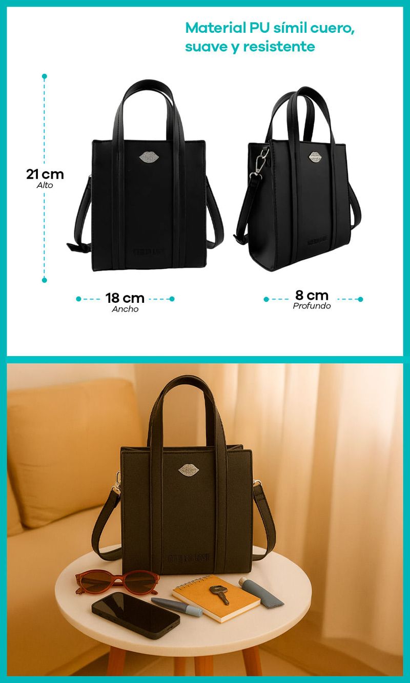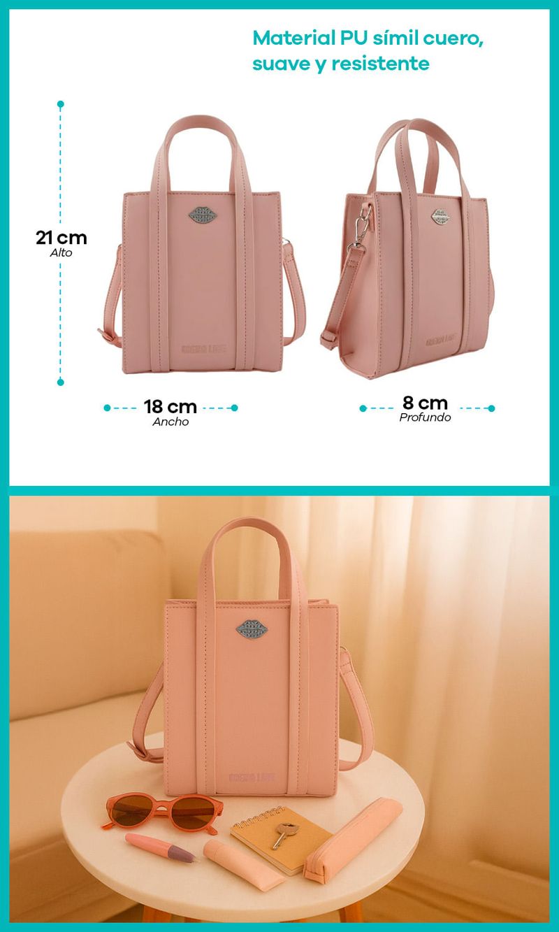 -Capacidad para llevar billetera, celu, neceser pequeño o estuche de lentes, entre otros.