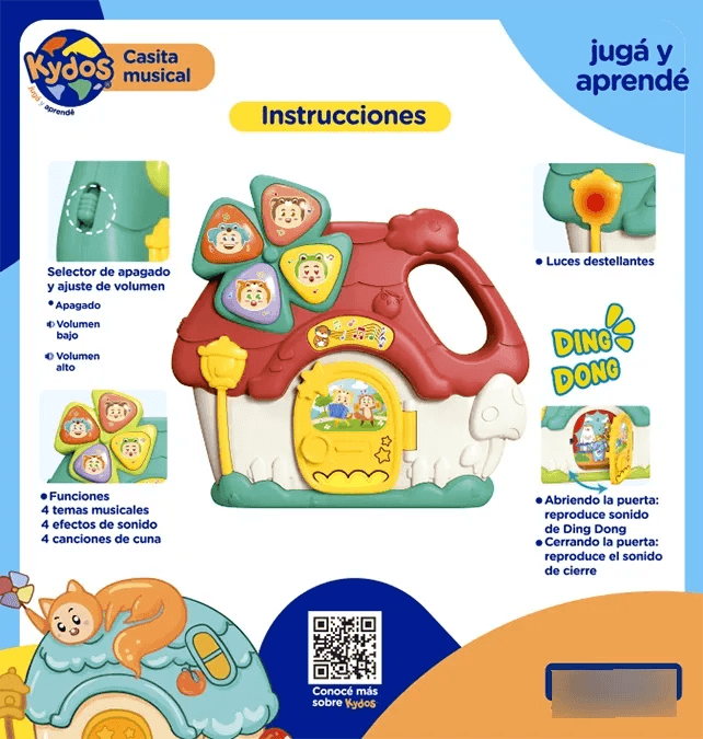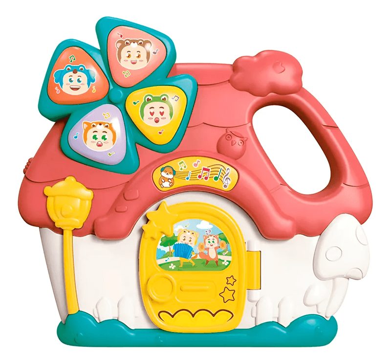 Con su encantador diseño de casita, ofrece melodías, sonidos y luces que acompañan cada pulsación.