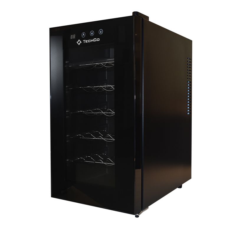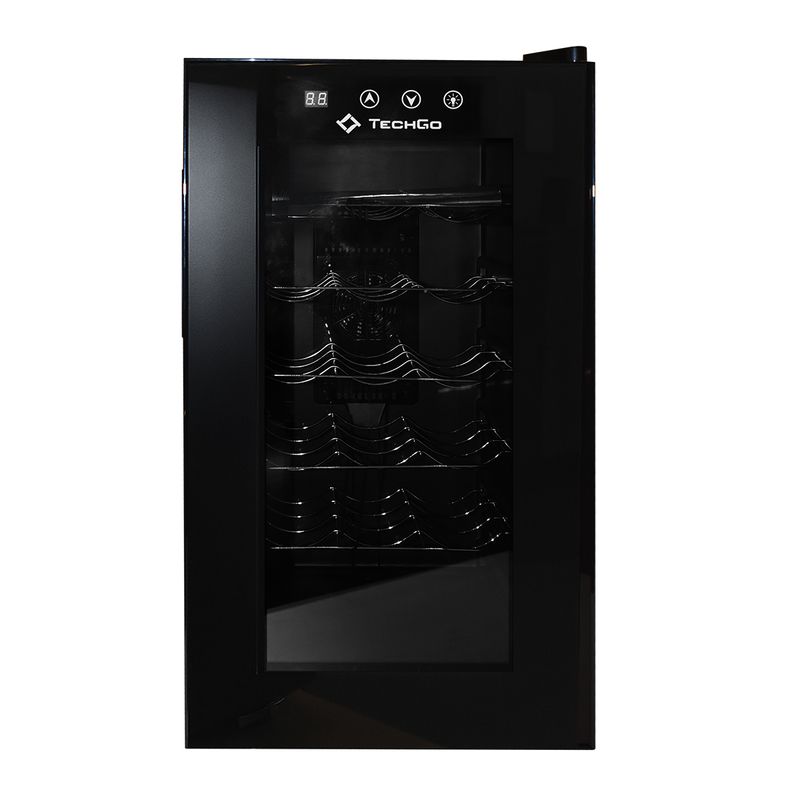 El control touch digital permite regular fácilmente la temperatura entre 11 °C y 18 °C, adaptándose a vinos tintos, blancos y rosados. Su puerta de vidrio templado transparente realza el diseño moderno y permite visualizar las botellas con elegancia.