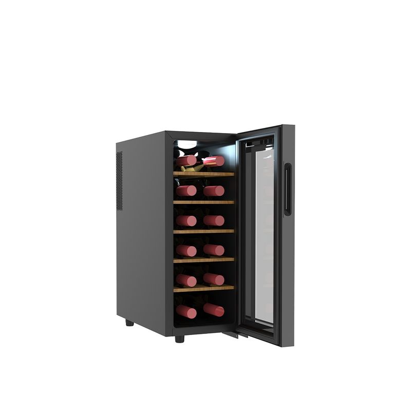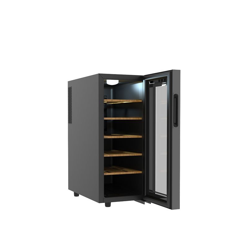 La cava T12 cuenta con capacidad para 12 botellas estándar de 750ml y 30 cm de largo.