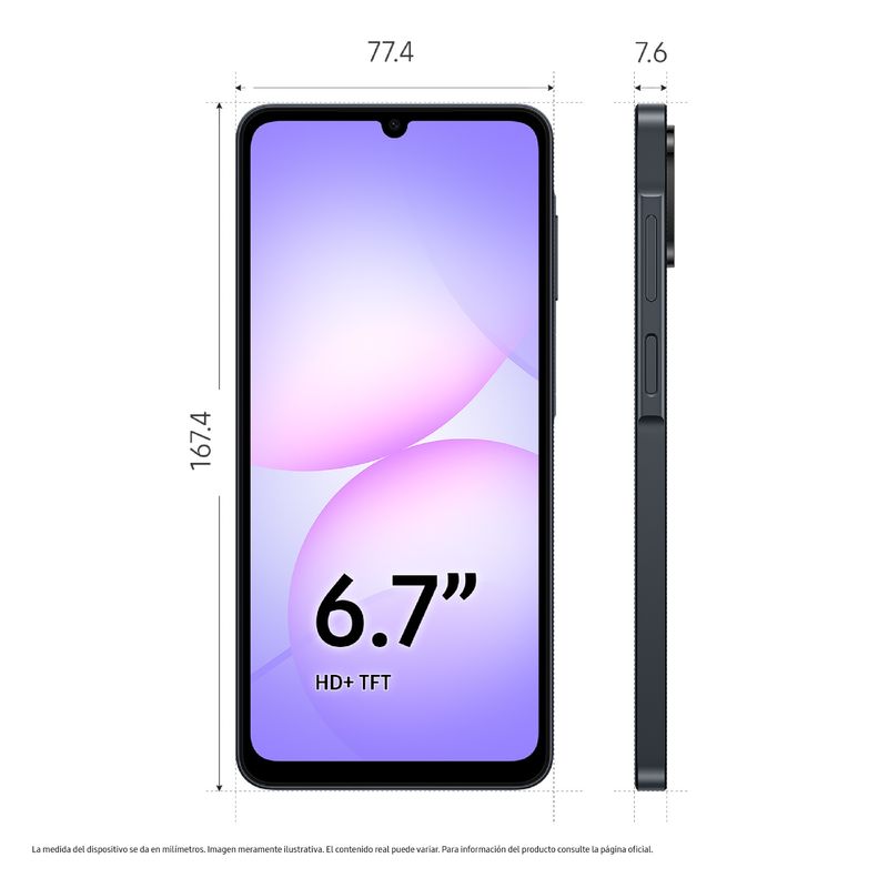 Samsung Galaxy A07 combina una pantalla amplia, un rendimiento equilibrado y una batería potente pensada para acompañarte todo el día. Es un equipo ideal para quienes buscan una experiencia completa sin pagar de más, con la calidad y confianza de Samsung.
