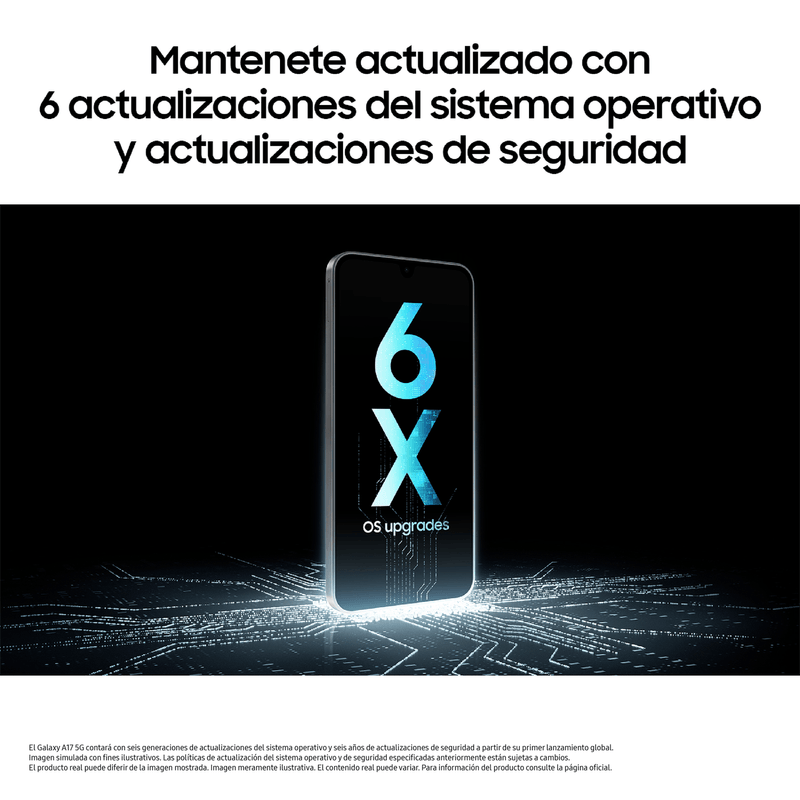 Longevidad Garantizada: Una inversión inteligente. Samsung asegura 6 actualizaciones de Sistema Operativo y 6 años de actualizaciones de seguridad. Además, cuenta con certificación IP54 y cristal Corning® Gorilla® Glass Victus®+ para mayor resistencia.
