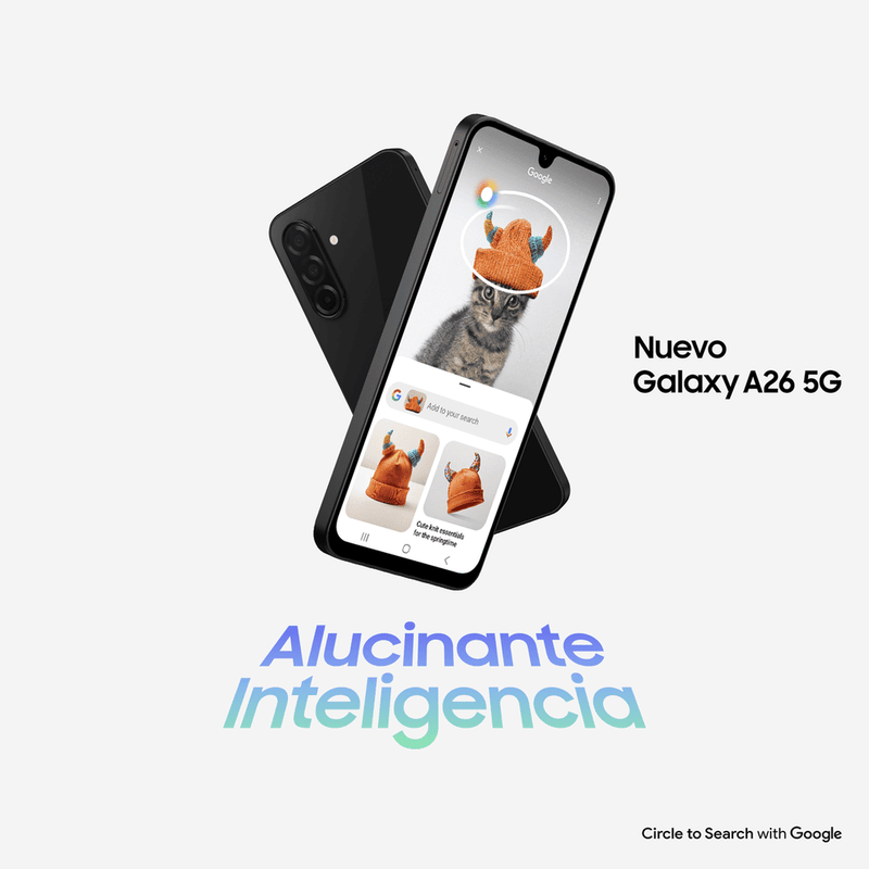 El Samsung Galaxy A26 5G llega con un diseño moderno, ultradelgado de 7,7 mm y resistencia certificada IP67, con cristal Gorilla Glass Victus+ para mayor durabilidad.