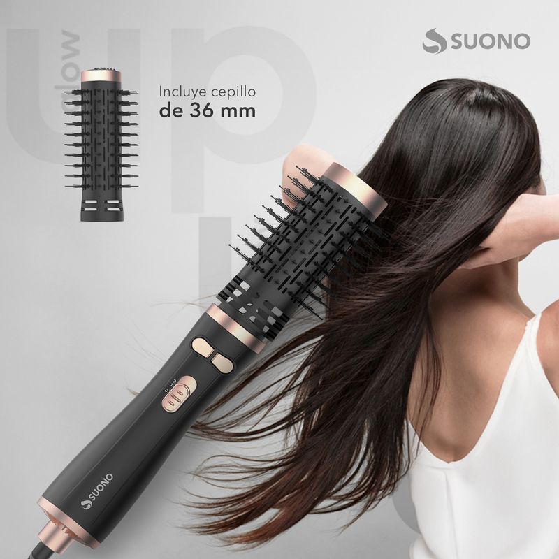 ¡Consigue un peinado con volumen y movimiento con el Cepillo Voluminizador Giratorio Suono! Adquiérelo hoy y luce un look impecable todos los días.