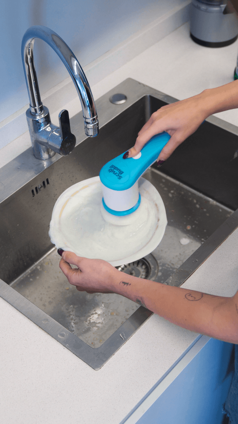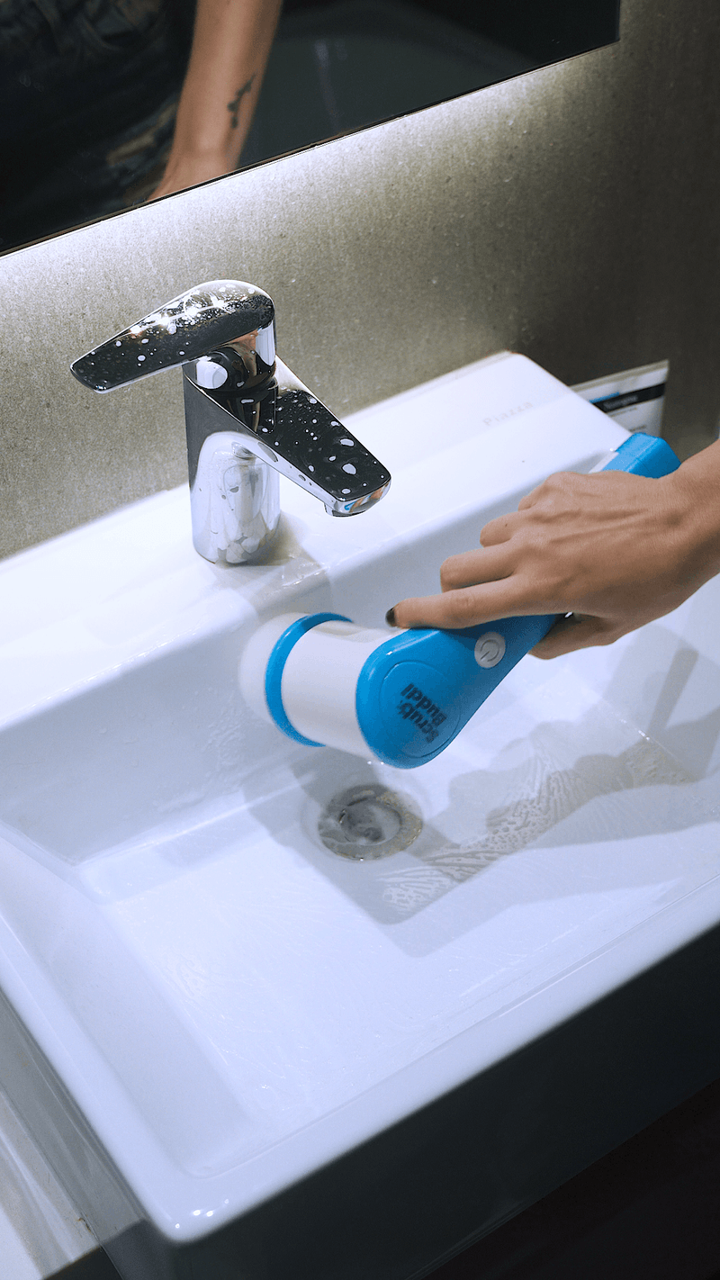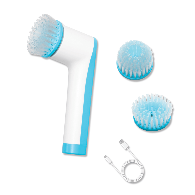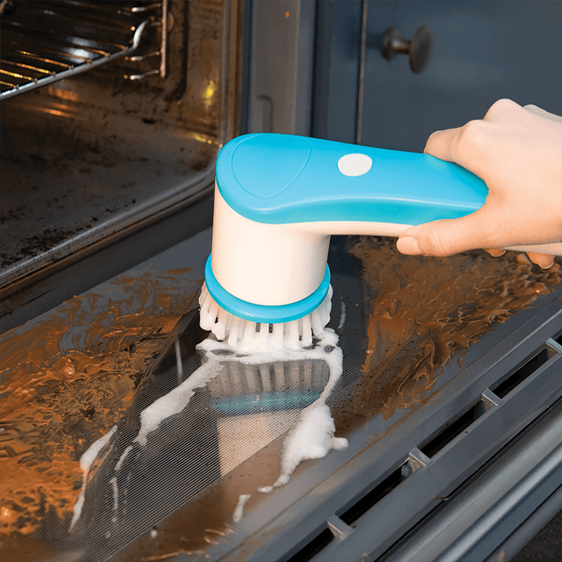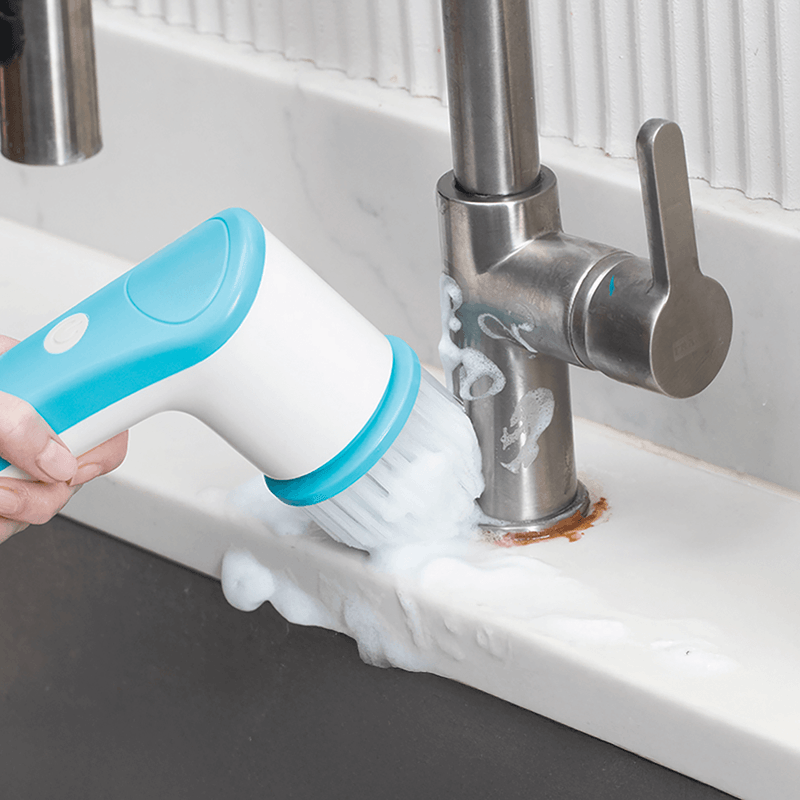 Viene con dos cabezales intercambiables según lo que tengas que limpiar: uno plano para superficies grandes (tipo pisos o mesadas), y otro en punta para los rincones, esquinas o esa suciedad acumulada, difícil de sacar. Además, como es un cepillo inalámbrico y resistente al agua, lo podés usar tranquilamente en la ducha o para limpiar el horno o sartenes.