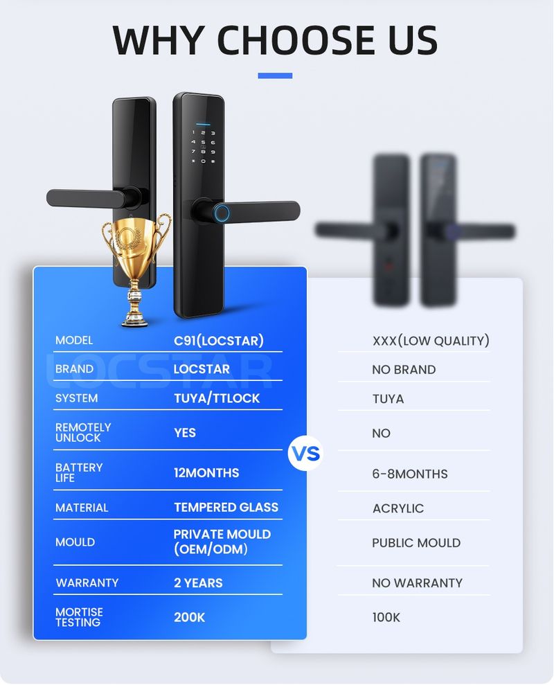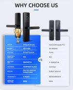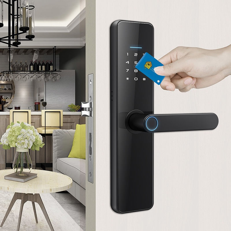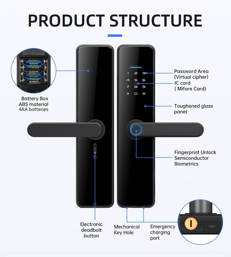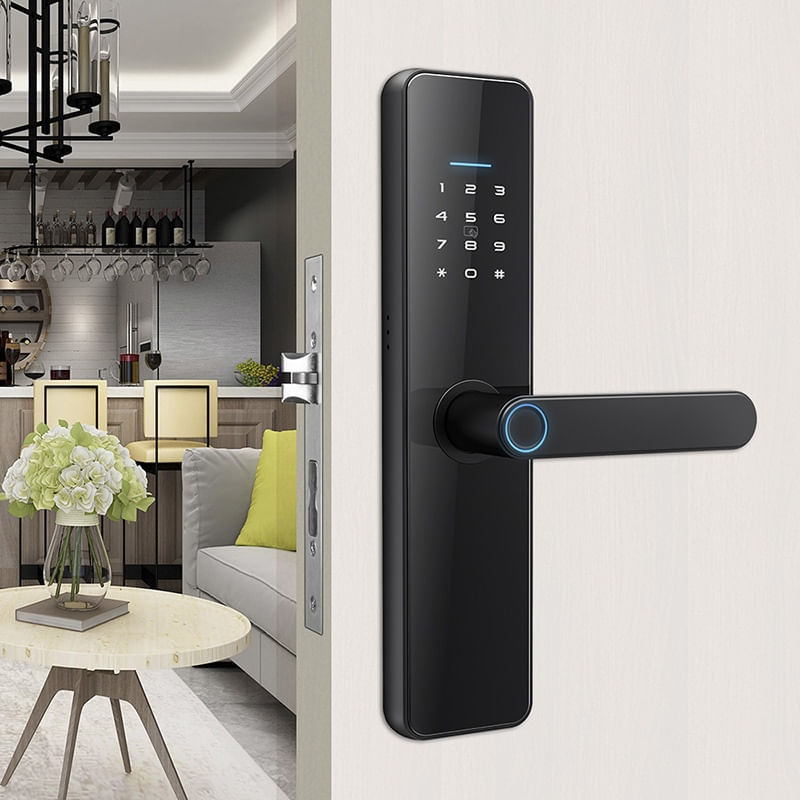 Cuenta con sistema de alarma ante intentos de acceso no autorizados, aumentando la protección del ingreso. Es compatible con puertas de madera y metal, y puede utilizarse tanto en interiores como en exteriores. Su diseño moderno y funcional la convierte en una solución ideal para quienes buscan seguridad inteligente con tecnología avanzada.