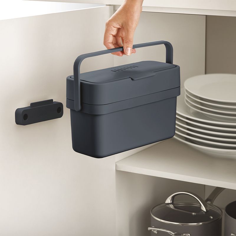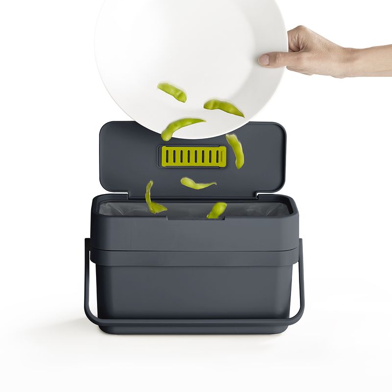 Este cesto de residuos delgado para desperdicios de alimentos está diseñado para facilitar la recolección de restos de comida, ya que cuenta con una conveniente tapa abatible y una apertura extra ancha.