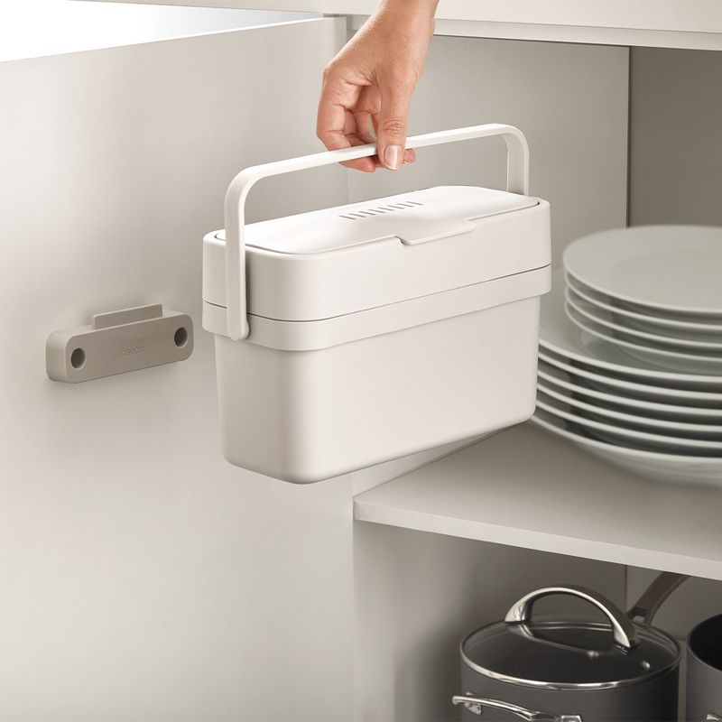 Este cesto de residuos delgado para desperdicios de alimentos está diseñado para facilitar la recolección de restos de comida, ya que cuenta con una conveniente tapa abatible y una apertura extra ancha.