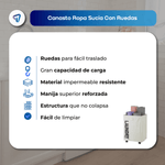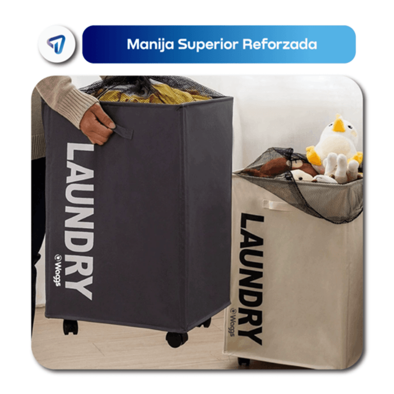 El cesto de ropa WAGGS CANA01 ofrece capacidad de 75 litros en un diseño plegable, impermeable y resistente, ideal para ropa y textiles del hogar. Fabricado en tela Oxford 600D con estructura rígida reforzada por varillas internas invisibles, se mantiene firme incluso vacío y puede plegarse para ahorrar espacio. Sus cuatro ruedas integradas y manijas laterales facilitan el traslado, mientras que su base rígida y material lavable aseguran durabilidad y practicidad en dormitorios, lavaderos o cualquier ambiente del hogar.