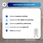 Cesto inteligente WAGGS TRHS01 de 9 litros, diseñado con estilo moderno y nórdico para aportar funcionalidad y estética en baños, cocinas u oficinas. Fabricado en PP+ABS resistente al agua y al uso diario, incorpora sensor de apertura frontal y superior que funciona con 2 pilas AA (no incluidas), abriendo en 3 segundos y cerrando en 5. Su tamaño compacto (22,5 × 41,5 × 22,5 cm) lo hace ideal para espacios reducidos, ofreciendo practicidad, durabilidad y un toque de elegancia en cualquier ambiente. Incluye tapa abatible y manual de usuario.
