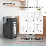 Fabricado con tela impermeable de alta resistencia, este cesto combina durabilidad, ligereza y un estilo moderno que se adapta a cualquier decoración. Además, su estructura permite plegarlo fácilmente cuando no está en uso, optimizando el espacio disponible.