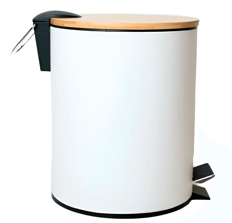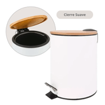 HOGAR ACTUAL CESTO DE RESIDUOS ACERO BLANCO 5 LTS CON TAPA BAMBOO CS