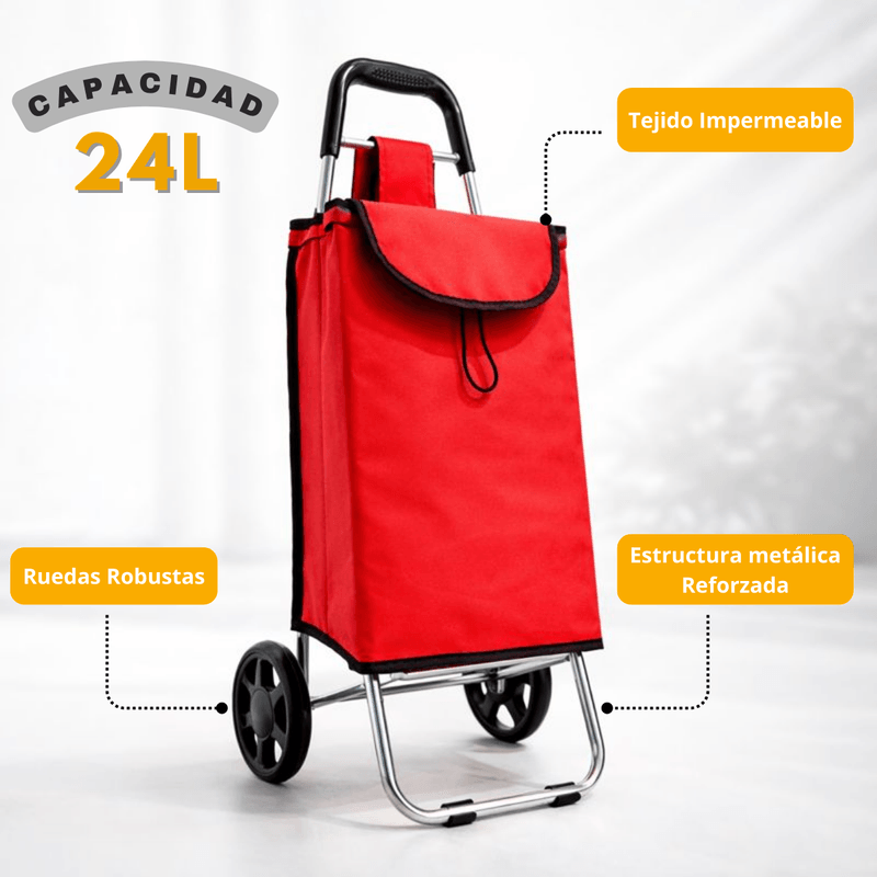 El Carrito de Compras de 24 litros de Hogar Actual es el compañero ideal para hacer tus compras de manera cómoda, práctica y sin esfuerzo. Diseñado con un estilo moderno y funcional, cuenta con una bolsa amplia y resistente, perfecta para trasladar productos del supermercado, feria o cualquier mandado cotidiano.