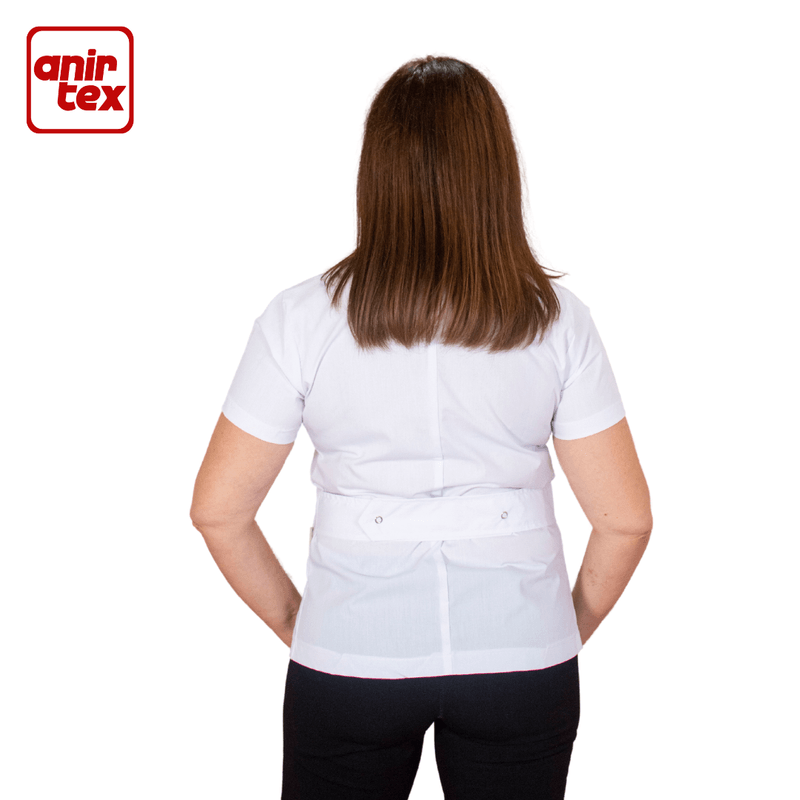 Chaqueta cuello mao VALERIE: la prenda perfecta para trabajar con comodidad y elegancia. Confeccionada en tela ARCIEL® Blanco, una mezcla de algodón 65% y poliéster 35%, esta chaqueta de manga corta garantiza una alta durabilidad incluso en jornadas intensas.