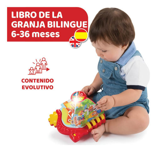 LIBRO INTERACTIVO: El Libro de la Granja de Chicco es un cuento interactivo y bilingüe (inglés-español) que cuenta la historia de la granja y habla sobre los animales que protagoniza cada página.