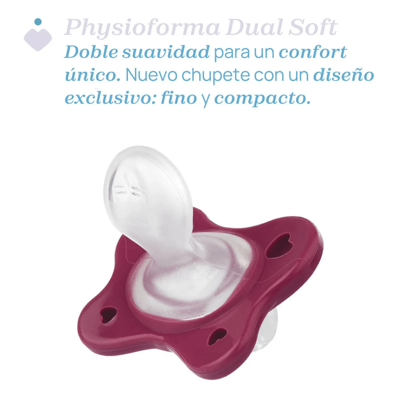 Descubre la doble suavidad de Chicco Dual Soft, el nuevo chupete con un diseño exclusivo: la comodidad del nuevo escudo delgado y compacto se une a PhysioForma, la exclusiva tetina de Chicco.