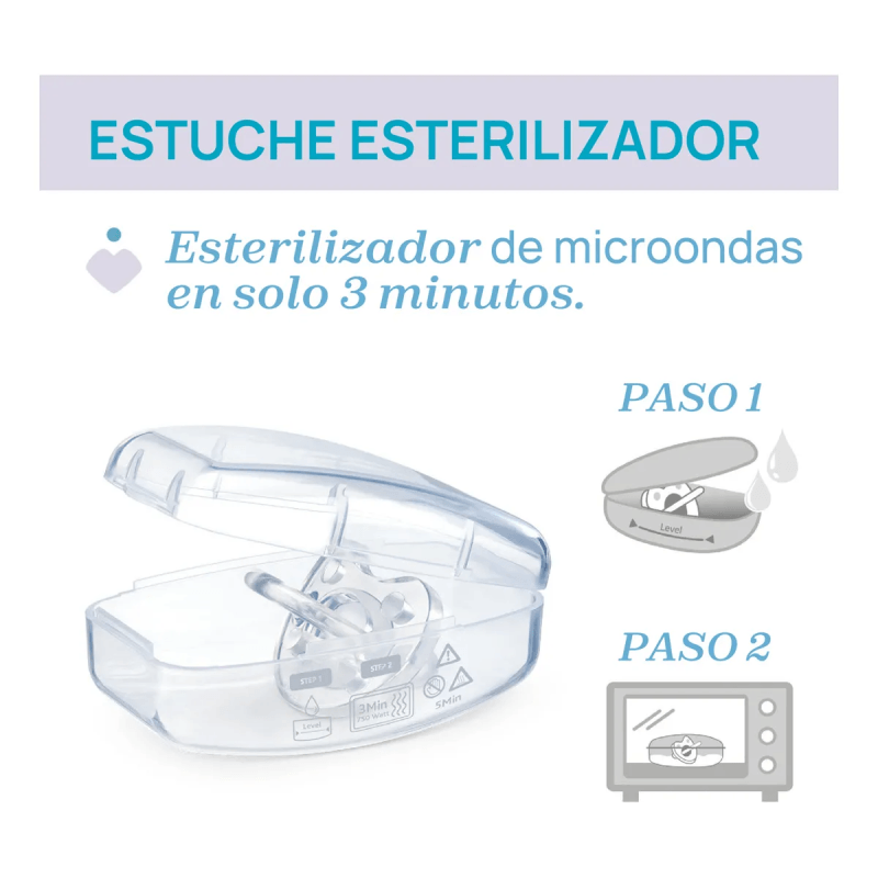 Estudios comprobados han demostrado que los chupetes Chicco PhysioForma® entrenan todas las funciones vitales de la boca para un crecimiento saludable: respirar, chupar, tragar, masticar y vocalizar.