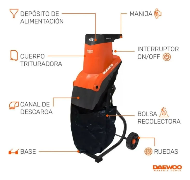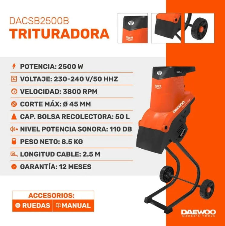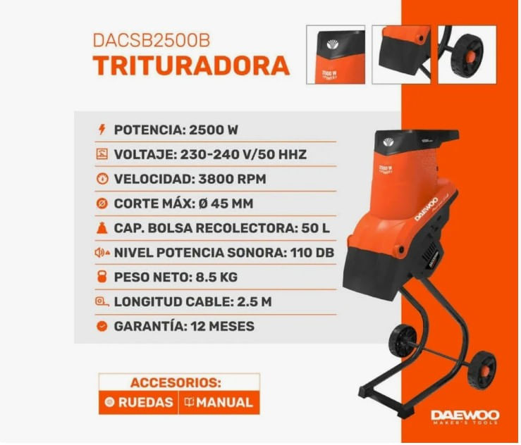 CHIPEADORA TRITURADORA DAEWOO DACSB2500B 2500W 3800RPM 50L