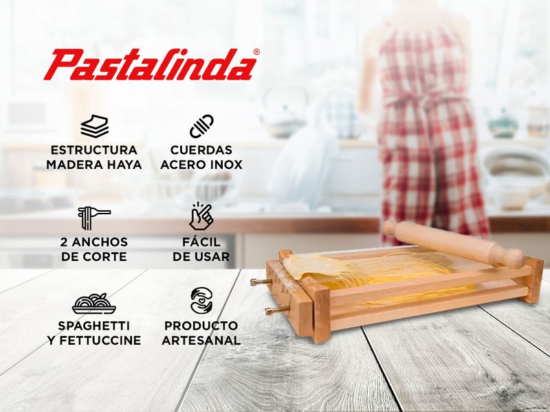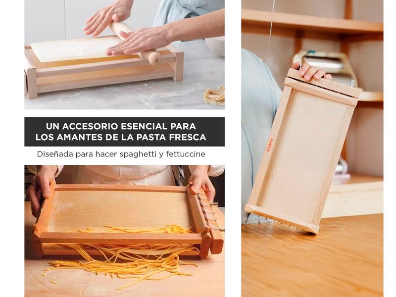 La Pastalinda Chitarra es un accesorio esencial para los amantes de la pasta fresca. Diseñada para hacer spaghetti y fettuccine de forma casera, esta chitarra combina funcionalidad y simplicidad para brindar una experiencia auténtica de cocina italiana.