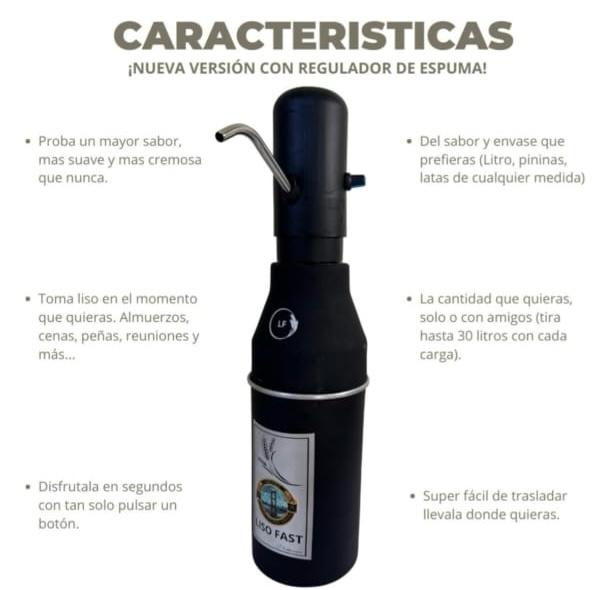 La Chopera Eléctrica LISO FAST recargable portátil es la solución ideal para los amantes de la cerveza que buscan disfrutar de su bebida favorita en cualquier lugar. Con una capacidad de 1 litro, esta chopera compacta y ligera, con un peso de solo 1 kg, es perfecta para llevar a picnics, fiestas o reuniones en casa. Su diseño elegante y funcional se adapta a cualquier ambiente, brindando un toque moderno a tus celebraciones.